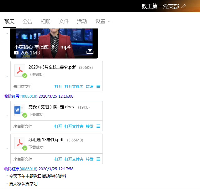支部书记陈红霞教授要求全体支部党员:线上集中收听相关文件、收看视频,线下要进一步认真学习、领会、贯彻相关精神,并落实到具体生活细节中去,实际行动中去。