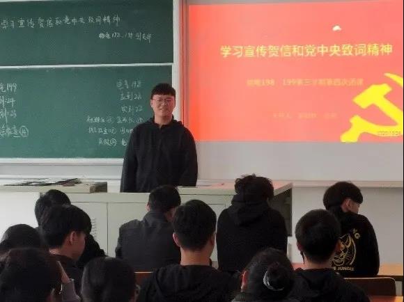 活动一开始,各班团支书简要介绍此次团日活动内容,紧接着通过演讲、观看视频等多种形式向同学们传达习近平总书记贺信精神和党中央致词精神。在活动过程当中同学们认真听讲,积极学习,就如何成为志存高远,德才并重,情理兼修,勇于开拓的新时代青年开展学习研讨。最后各班团支书作出总结,此次团日活动在同学们的热烈掌声中圆满结束。