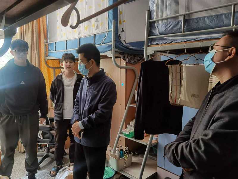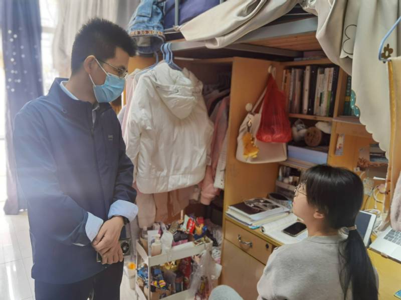 当前,新冠肺炎疫情防控形势严峻,yd222云顶线路检测认真贯彻公司疫情防控专题视频会议精神,对在校生教育管理、线上教学、心理帮扶等相关疫情防控工作再安排、再部署、再落实。4月19日上午,住校值班的物电公司经理徐华、副书记雷承富与辅导员李艳、贺子君、虞杨一起深入公司各年级员工宿舍进行走访慰问,进一步检查督促在校生的疫情防控和线上学习情况。4月20号下午,徐华还在班主任夏益祺老师陪同下随机走访了20级物理师范班的部分男生宿舍。