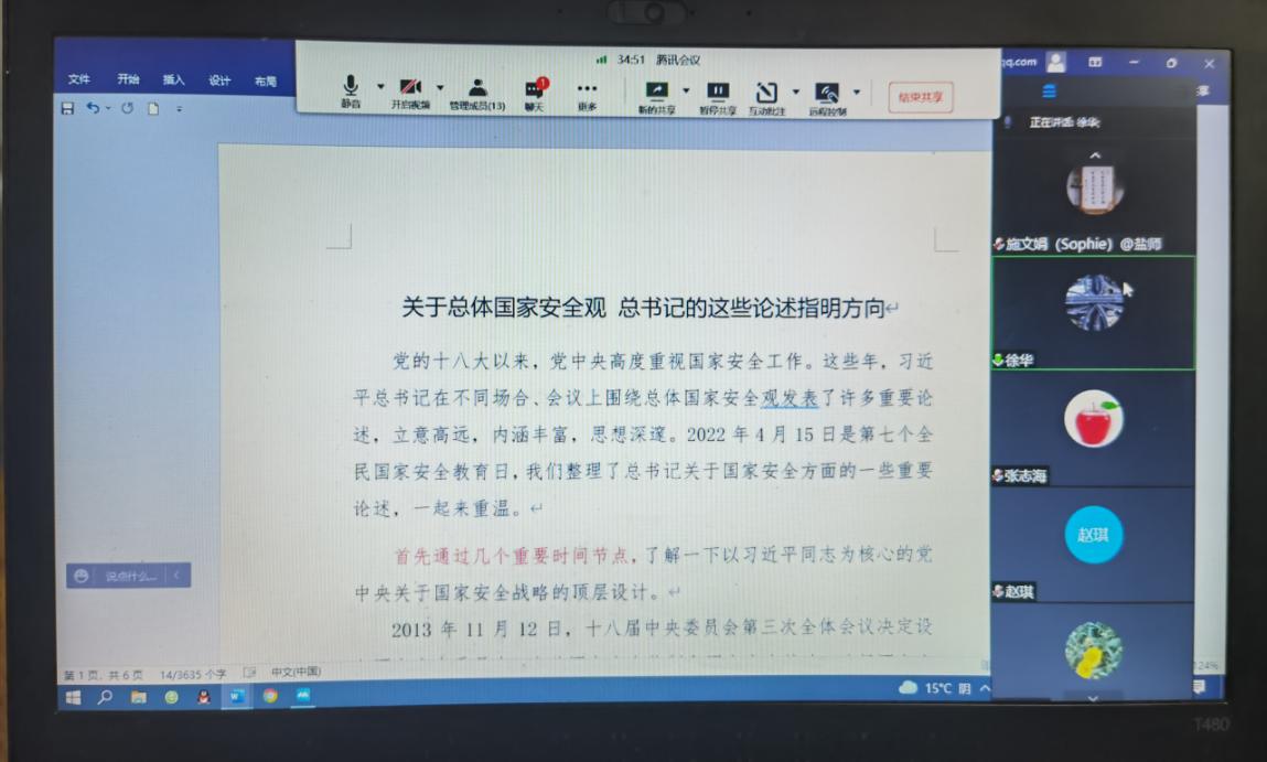 2022年4月27日,公司党委组织了中心组政治理论学习,会议于腾讯会议平台线上举办,物电党委书记孙伟主持会议。