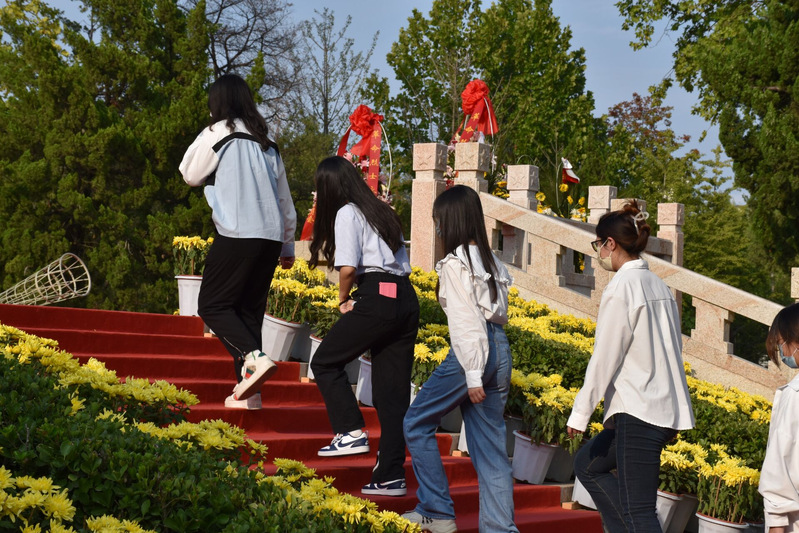 纪念仪式结束后,全体师生缓步绕行瞻仰烈士纪念碑,追思革命先烈的丰功伟绩。