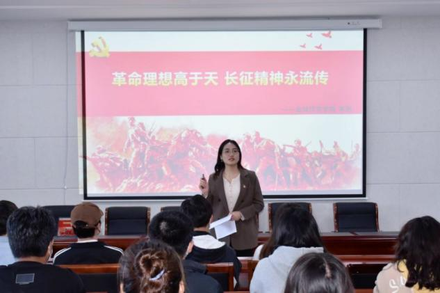 活动最后,李艳老师从长征历史回顾、伟大长征精神、坚定理想信念,走好新时代长征路三个方面给同学们讲述了“革命理想高于天,长征精神永流传”的奋斗历程,呼吁我们物电学子要不忘初心牢记使命,以坚定的信心、昂扬的斗志奋力走好实现中华民族伟大复兴中国梦的新长征路,表达了对同学们的殷切希望。