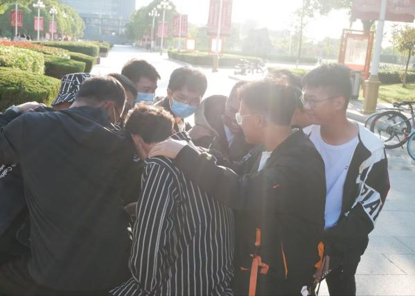活动开始前同学们先进行抽签,三人一组,抽到“嘴巴”的同学在抽到“手”的两人帮助下将气球吹起,一人吹,两人扶,再将其挤破。该活动让同学们体验到团队合作的乐趣,暂时忘记生活的琐碎,将所有烦恼一同吹散,释放压力,打败孤独感。