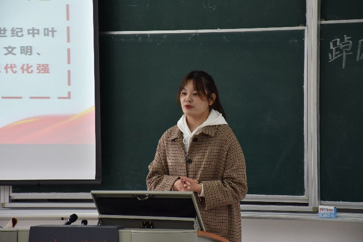 紧接着,思政213班姚雨佳为同学们讲解了“守正创新,理论新境界”和“科教兴国,青年勇担当”的科学精神,解读了科学社会主义在二十一世纪的中国焕发出的蓬勃生机,以及中国式现代化为全人类实现现代化提供的新机遇新选择。同学们认真听讲,积极回应宣讲员工提出的问题,并表示作为新时代青年必须坚持和加强党的全面领导。