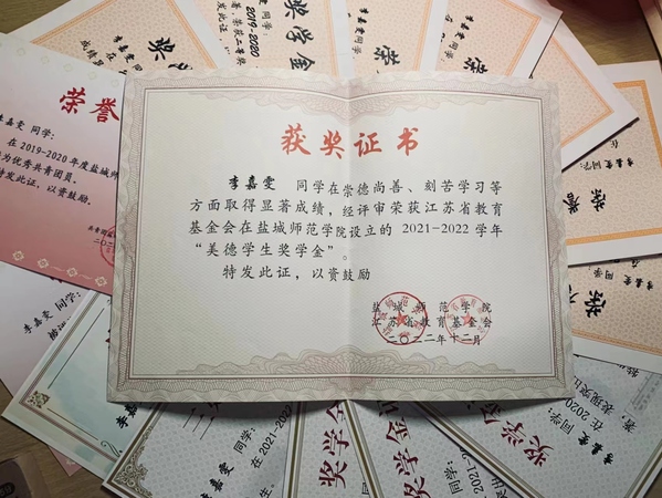 李嘉雯同学学习态度端正,有明确的学习目标。课堂上认真听讲,积极与老师互动,课后自觉总结和归纳知识点,在各科考试中都取得了优异的成绩,综合排名连续4个学期位列班级第一。大学期间获得1次一等奖学金、5次二等奖学金,多次获校、院级三好员工和优秀共青团员等荣誉。在学习专业课的过程中,李嘉雯同学对所学专业产生了浓厚的兴趣,在学长的推荐下加入了老师的课题小组。在不断地学习和探索过程中,获第三届全国老员工创新体验赛三等奖,盐城市创新创业大赛三等奖。李嘉雯同学很喜欢去图书馆享受独处、深思的状态。李嘉雯说:“作为员工,现在我们要做的就是静下心来学习,做好眼前的事。”