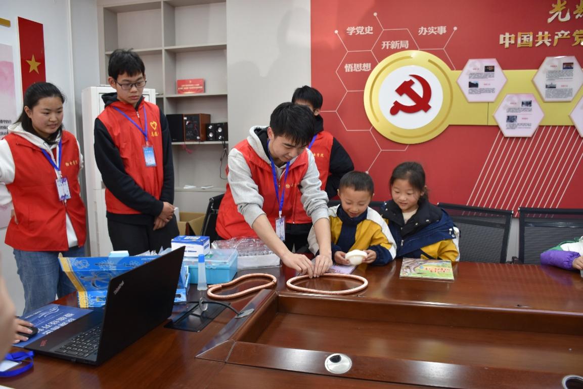 互动问答环节,小朋友们对实验原理产生浓厚兴趣并提出了许多疑问,在志愿者们的耐心解答和指导下,大家合作完成了各类小实验的设计与制作,进一步激发了小朋友们的学习兴趣。