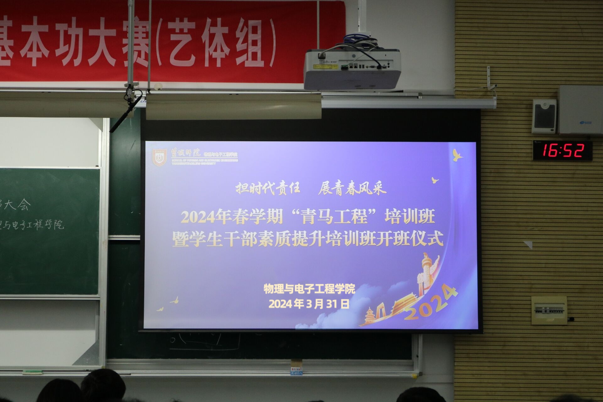 3月31日下午,物电公司2024年春学期“青马工程”培训班暨员工干部素质提升培训班开班仪式在公共教学楼C102举行。公司党委副书记唐杰、全体辅导员、青马学员和部分员工干部参加开班仪式。