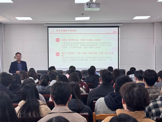 唐杰从对党的认识、党员的权力和义务、树立正确的入党动机以及如何以实际行动争取早日加入中国共产党四个方面进行了深入的讲解。培训中,唐杰围绕党员的八项权力和八项义务展开详细解读,为同学们阐明各项权利与义务背后的深刻内涵。唐杰着重强调,党员要时刻严守党的纪律,在思想和行动上与党组织保持高度一致,主动深入群众、团结群众,真正做到从群众中来,到群众中去,将履行党员义务作为行动准则,内化于心、外化于行。